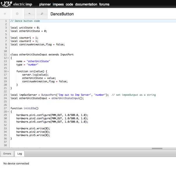 Sin embargo, el Imp eléctrico utiliza un IDE en línea. Esto significa escribir el programa en un explorador web en el sitio de la Imp, a continuación, pulse un botón que automáticamente empuja el programa a la Imp sobre Wifi. Tiene la ventaja de no necesitar instalar un IDE en cualquier equipo que desee programar de, como manteniendo su código seguro en nube de Imp.