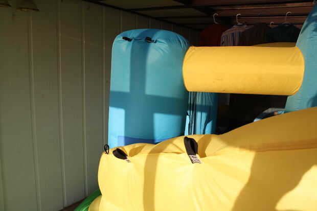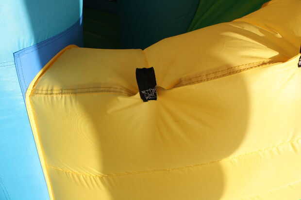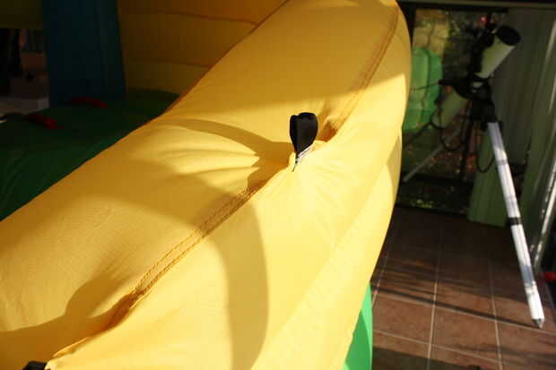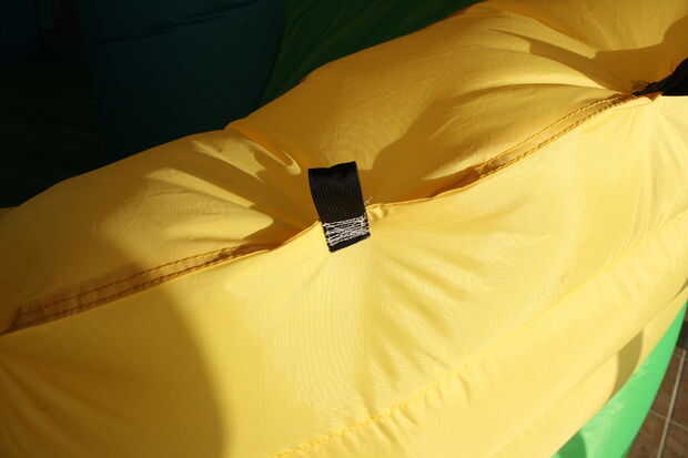 Aquí están los lazos con la casa inflado.  Fugas de aire muy poco en las costuras de las asas.