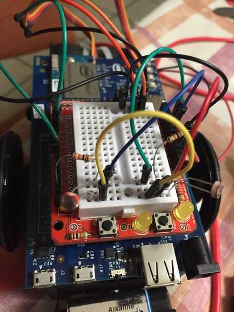 1. Los fotoresistores con inversión al pin A0 de un divisor de voltaje (derecho) y A1 (inzquierdo)