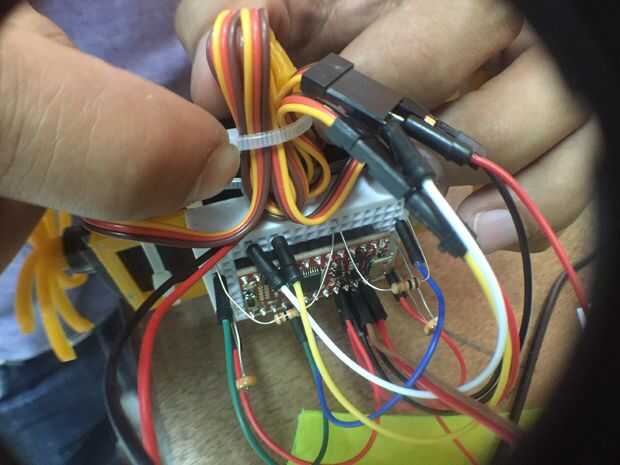 Los cables de los servos motores, largos de como hijo, los amarramos con una gaza de plástico.