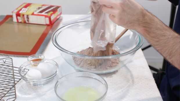 ingredientes:2 1/4 tazas (295 g) harina de todo uso1/4 taza (30 gramos) de polvo de cacao holandés-procesado (puede utilizar regular sin azúcar)1/2 cucharadita de polvo de hornear1/2 cucharadita de bicarbonato de sodio1/4 cucharadita de sal3/4 taza (