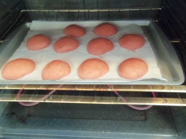 Hornear durante unos 9-10 minutos o hasta que las tapas de las galletas, presionando ligeramente, vuelta del resorte (o un palillo de dientes insertado en el centro de una galleta, éste salga limpio). Retirar del horno y transferir a una rejilla para enfriar completamente.