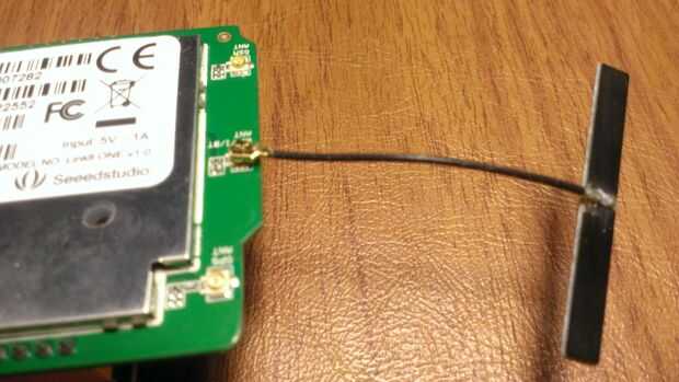 Porque queremos buscar redes WiFi, vamos a necesitar conectar la antena de WiFi para ello. El proceso es bastante sencillo. Agarra la antena de WiFi de tu LinkIT un kit (debe han llegado con el ONE de LinkIT) y fíjelo a la ranura en la parte posterior que dice WiFi.