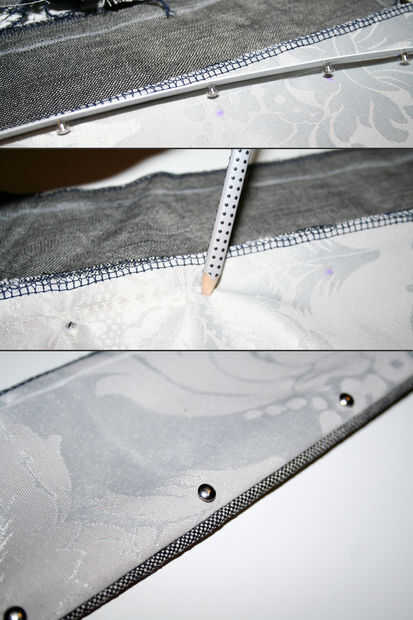Al hacer los agujeros para los postes que no desea rasgar a la tela, pero sólo una parte los hilos de rosca, así que puede cerrar otra vez alrededor de los postes.