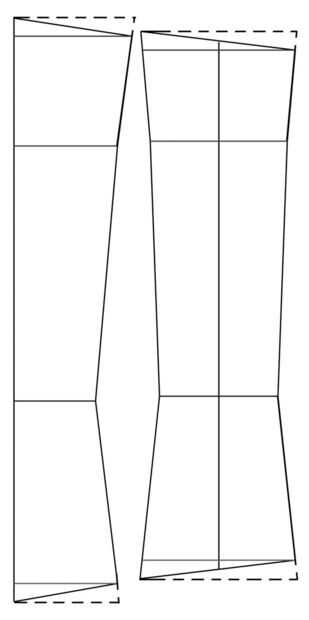 El siguiente panel funciona de la misma manera, pero esta vez, vamos a usar la longitud original del corsé menos dos centímetros que deduce para hacer más pequeño hacia un lado. Esta nueva longitud (30cm) es la longitud de la segunda línea larga.