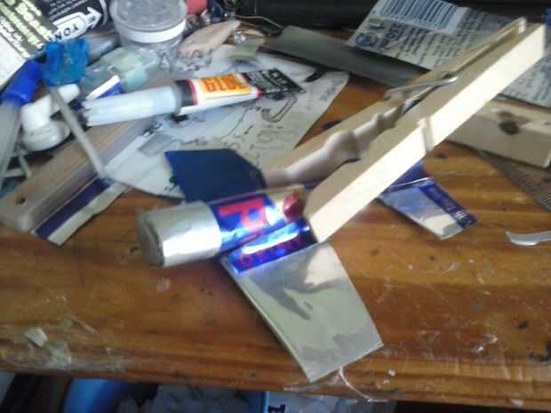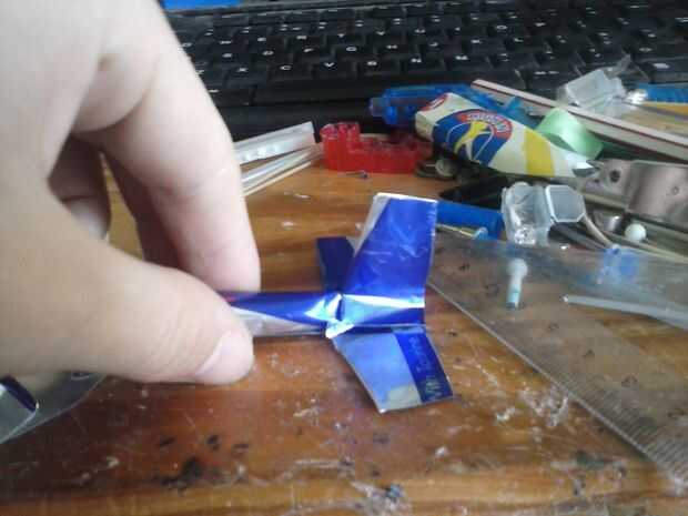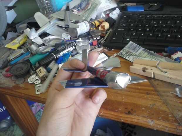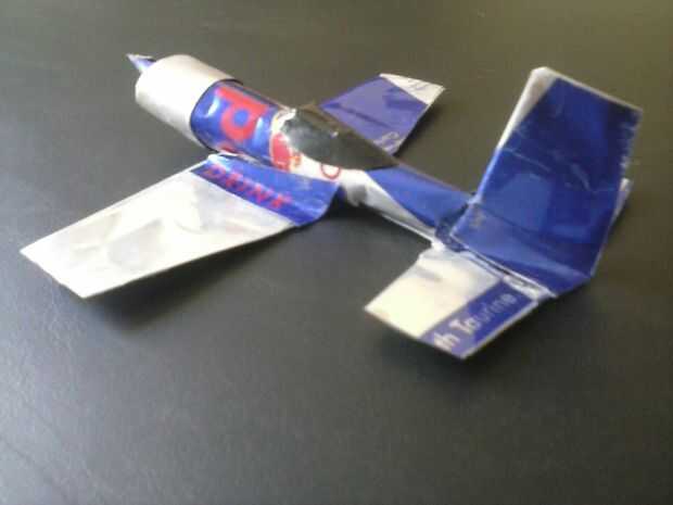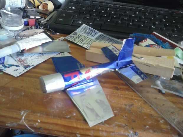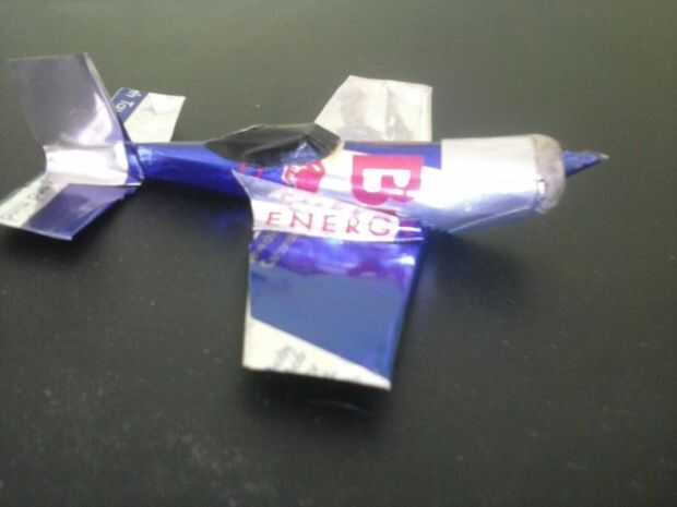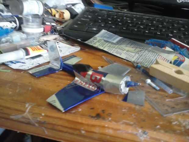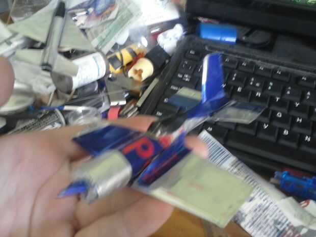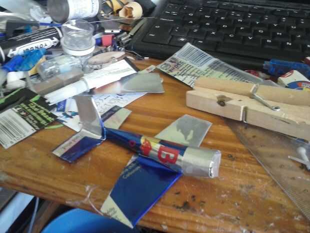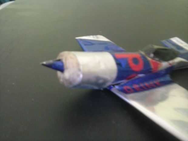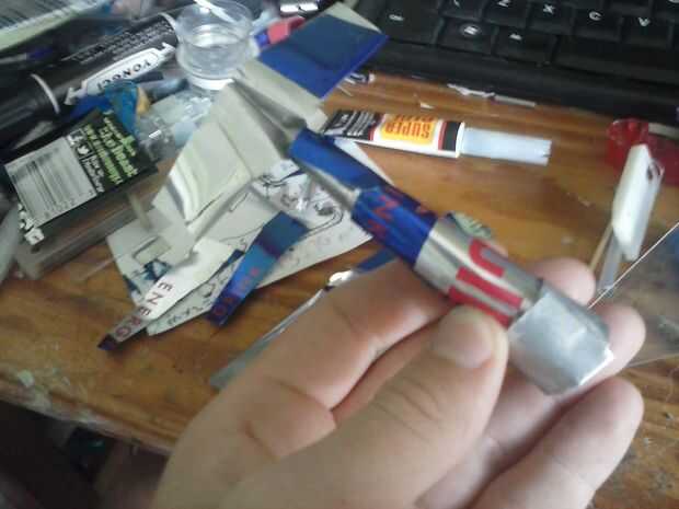 Mezcla las alas en el fuselaje con 2 piezas extras de lata de aluminio.