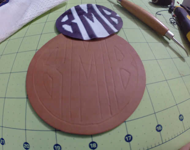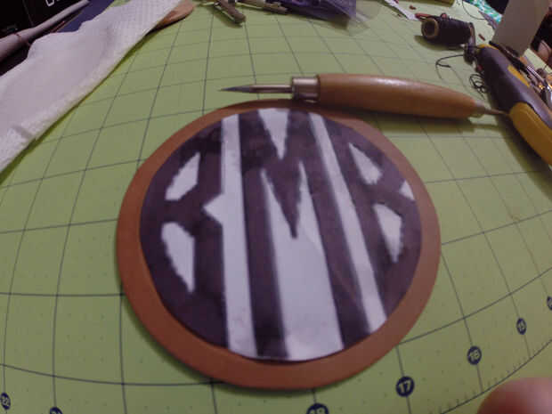 Diseñar su monograma y la impresión hacia fuera o dibujarlo tú mismo en un pedazo de papel no más grueso que el papel de la impresora medio.