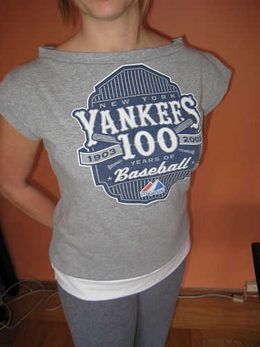 Si eres un fanático del béisbol (o pasar el rato con uno que te capas con bebidas heladas a ver el partido), saber que camisetas de equipo son generalmente grande, cuadrado y no favorecedor de nosotros chicas. (Hay versiones de niña en rosa y como una camiseta de bebé muñeca de los años noventa. No gracias, vamos a hacer nuestras propia!)