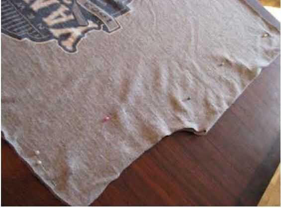 Usted puede hacer esto en ambos lados como se muestra abajo, o usted puede ahorrar tiempo fijando solamente un lado y luego doblar la camisa por la mitad longitudinalmente antes de empezar a cortar.