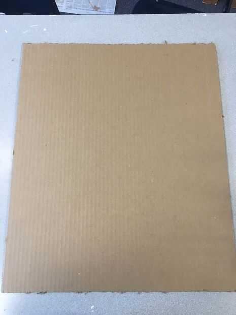 Pude conseguir una caja de en que papel afiche vino. Me quité las aletas para que tenía un pedazo de cartón sólido con sin curvas. El cartón mide aproximadamente 35" alto y 25" de ancho.
