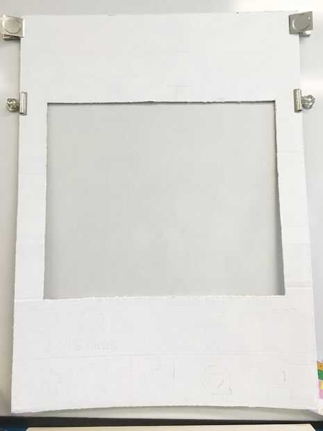 Después de cortar la caja de foto centro, cubrí la estructura con una capa de imprimación/Gesso y luego una capa de pintura acrílica blanca.