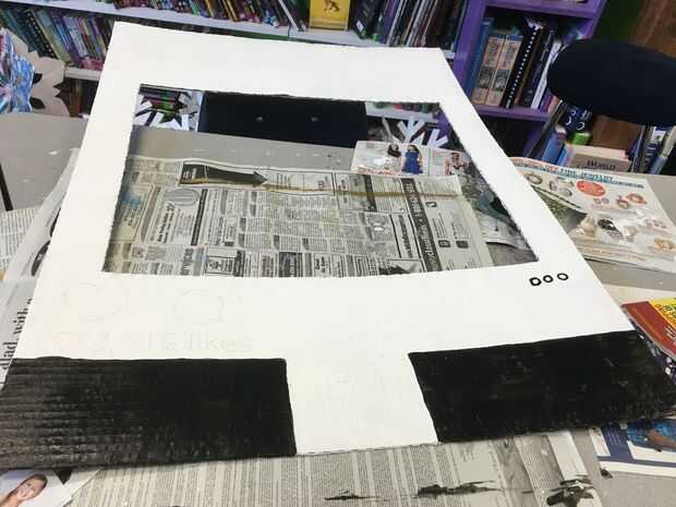 Al principio iba a pintar las plazas para la barra de herramientas uno a la vez, pero terminé haciendo de los negros a la vez. La pintura sólo negra que llevaba en mi aula era tela negra pintura, eso es lo que usé---muy bonita y brillante.