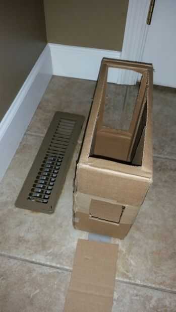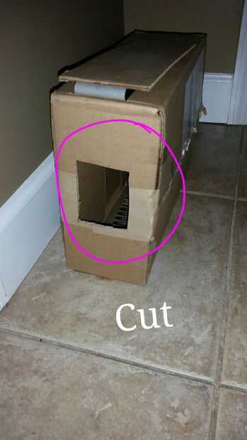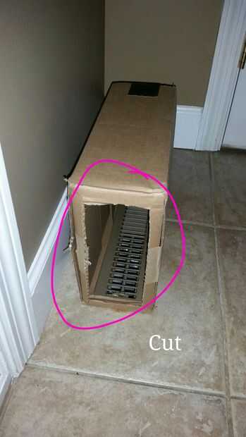 Siguiente orificio en ambos lados de las cajas. En la figura 2 hay un agujero más grande que corte al lado. En el cuadro 3 hay un pequeño agujero que tiene una aleta que se ve en la foto 4 que puede cubrirla. La aleta puede controlar su aire para que cualquiera pueda llegar a ambos lados de la caja, o sólo un lado de la caja. La aleta es una pieza de tira de cartón con cinta en la parte superior que permite que se doble hacia arriba y hacia abajo.