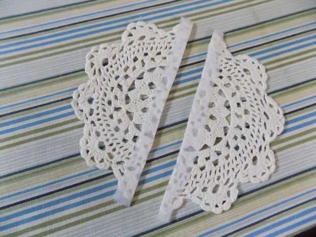 Corte a través del centro de la entretela tiras creando dos mitades de la servilleta con entretela a lo largo de los bordes cortados.