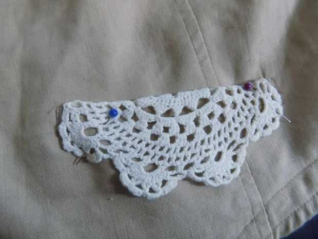 Nota: Mi chaleco tiene 1/2" profunda falsos bolsillos. Si la ropa no tiene bolsillos, puede que desee utilizar dos tapetitos y crear bolsillos con ellos en su lugar. Simplemente fije el tapete donde quieras la bolsa y coser alrededor de sólo los bordes de la parte inferior.