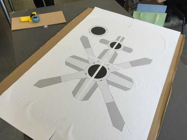Tomar las 4 hojas que has impreso y asegúrelas con cinta adhesiva, haciendo coincidir las esquinas marcadas.