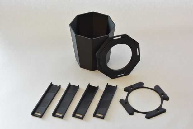 Usted tendrá que imprimir 1 cáscara, 4 canales, 1 tapa y 1 frontal.