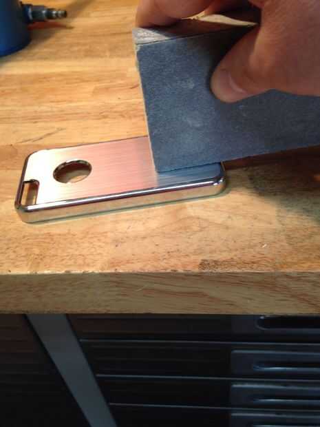 Ya que el caso es cepillado acero inoxidable era capaz de seguir la veta con una esponja arena para eliminar las rebabas de la perforación.