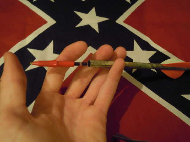 Ahora necesitas quitar la tinta de insertar el lápiz su uso. Estoy usando un lápiz rojo, porque tiene una punta roja super cuidada que coincide con las plumas rojas en mi flecha, y se ve bastante dulce como eso! Usar cualquier lápiz de color que te gusta, sólo asegúrese de que tiene una punta desprendible. Una vez tienes la tinta insertar hacia fuera, prueba colocar el inserto en el extremo de la flecha, para asegurarse de que el prospecto no es demasiado grande para la flecha. Si es demasiado grande, no pánico, usted puede ya sea arena abajo del borde de la inserción hasta que cabe, o simplemente puede tratar de una pluma diferente.