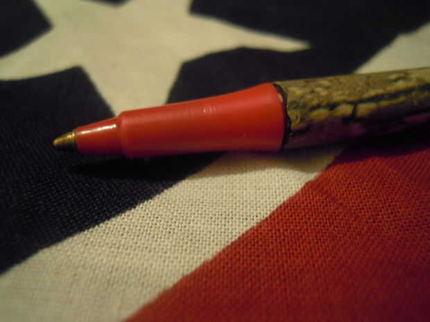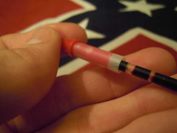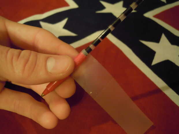 Más probable si el prospecto pluma encaja en el extremo de la flecha, no era un ajuste perfecto. Probablemente ondulará alrededor un poco. Esto estoy basando en el hecho de que mina. Una vez más, no te asustes. Esto es donde la cinta eléctrica o cinta Scotch en mi caso entra en juego. Cortar un pequeño trozo de cinta y Envuélvala alrededor de la inserción de la pluma. Prueba de colocarlo otra vez. ¿Todavía suelto? Envuélvalo con cinta un poco más alrededor de él. ¿Demasiado apretado? Tomar el trozo de cinta y probar un trocito más pequeño de la cinta. Sólo sigue el cachondeo con él hasta que encaje cómodo y agradable.
