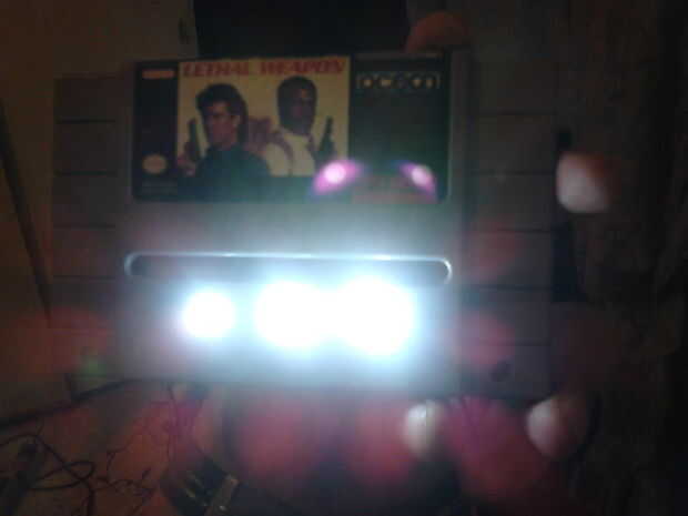 Después de hacer todas las conexiones, prueba de la luz con el 9.6v batería. Las 3 luces deben subir brillantes. Busque un poco tenue rosado/púrpura LEDs, como esto puede indicar que sobrecalienta por tener el soldador durante largos períodos de tiempo sobre los cables de LED. Si ves esto, trate de reemplazar los LEDs, ya que tienden a fallar muy pronto.