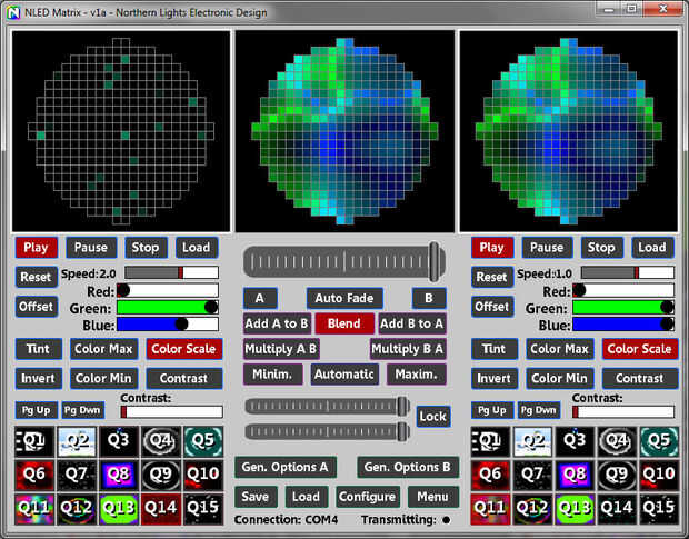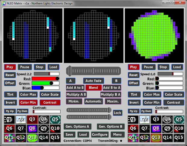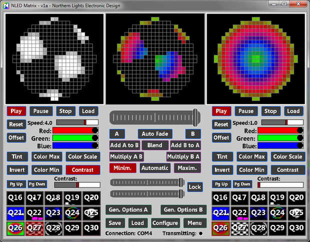 Material de archivo: Debido a la forma y tamaño único, secuencias de vídeo tiene que ser creado especial para el tamaño. Adobe After Effects trabaja bien para la fabricación de 22 x 22 tamaño videos. Videos deben tener alto contraste de colores/niveles para producir mejores resultados cuando aparece en la matriz de LED. El software de Matrix NLED incluye varias fuentes de generación, que también funcionan bien con pantallas pequeñas.
