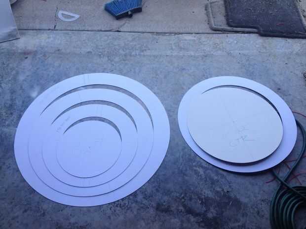 Aquellos que están todavía con nosotros y no soñando otras cosas dará cuenta de que esta imagen tiene algunos círculos a la derecha que no están en el plano medido. Son opcionales para el paso final de esta compilación. Cuando haya terminado, debe tener los 4 círculos de la izquierda. Si eres extra patriótico o en busca de una estrella de cinco puntas por alguna extraña razón también tendrán una estrella cortada de la chatarra.