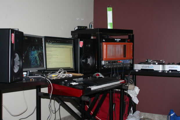 Vamos a comenzar con mi estudio. Lo que voy a hacer es mover mi estudio al otro lado de mi habitación y pasar mi cama junto con algunas otras cosas a esa esquina. Yo estoy rediseñando mi apartamento para que pueda caber todo en el estudio y aún mantener la sala de sonido acústico.