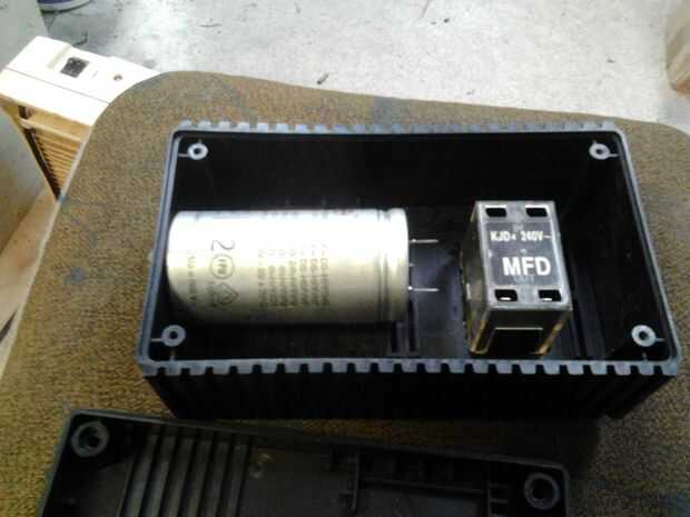 Brian suerte suficiente tenía un libro llamado motores eléctricos en el taller de inicio de Brian Cox que después de un poco de investigación a través de fue capaz de decirle que se trataba de un condensador de funcionamiento motor, más el motor tiene un condensador de arranque el motor y luego un interruptor centrífugo lo desactiva, esta necesita un condensador conectado todo el tiempo correr y que esto era un tipo raro de motor se utiliza principalmente en pequeños tornos. Con esta información que él era capaz de conseguir el motor conectado con que cables para funcionó. así que ahora era sólo un caso de hacer una caja de interruptores que también podría albergar el condensador y cables todo.
