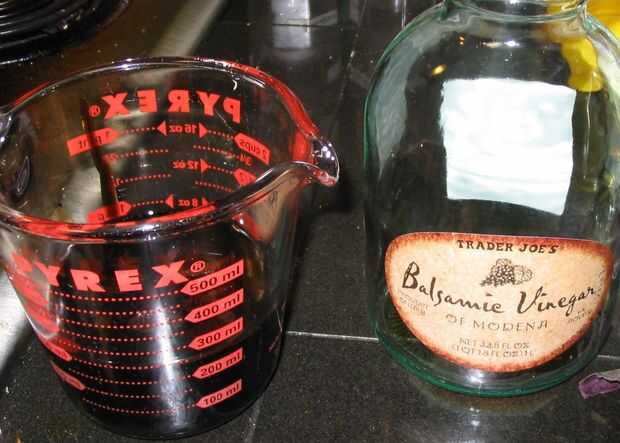 Comenzamos con 1L de vinagre y terminaron con 250mL a una concentración de 4 x. Esto resulta para ser una muy buena concentración para rociar sobre la comida, pero es demasiado espeso para ser confundido con vinagre recta. Una concentración de 2 x probablemente trabajaría mejor si prefieres mantener una textura menos espeso.