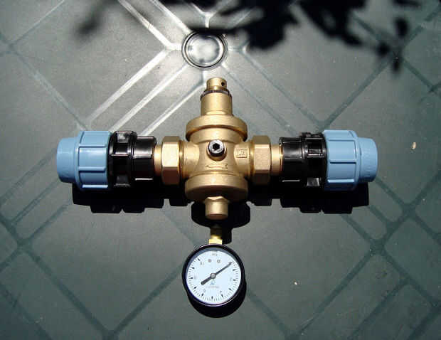 Este dispositivo utilizado para reducir la presión - esto es reductor (con manómetro de agua). Específicamente, esto se hace en Italia.