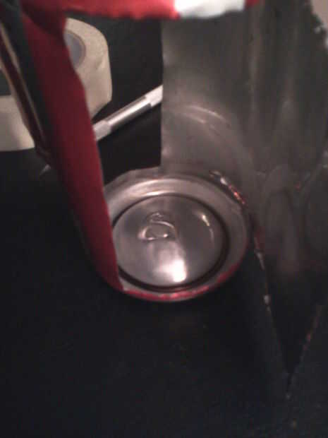 Luego use el adhesivo para asegurar la lengüeta en la parte inferior de la lata y asegúrese de que la apertura se alinee con los bordes verticales de ángulo.