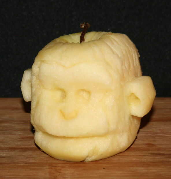 Si equivocamos y cortar demasiado o cortar el tallo, etc. - sólo inténtalo de nuevo y servir los descartes como postre principal manzana cortada.