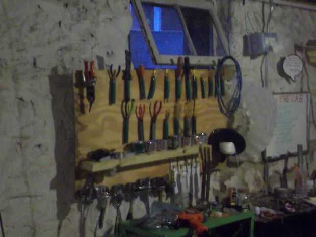 con mis herramientas de mentira todo mi banco de trabajo siempre tuve problemas para encontrar lo que necesitaba. Pero suerte que había dejado unas paredes de metal traseras de un viejo almacén estante, parte cutre naranja oxidado en la primera image