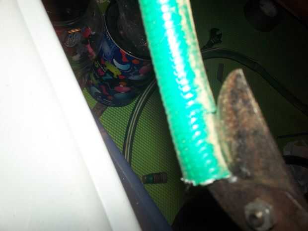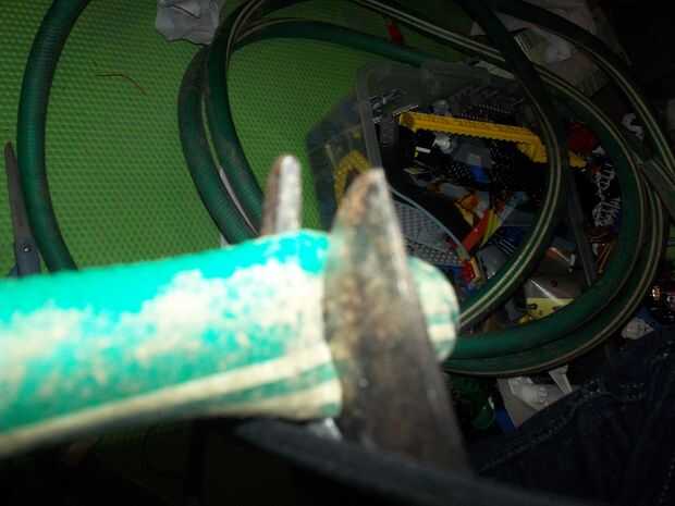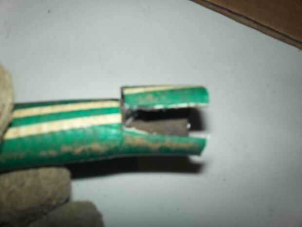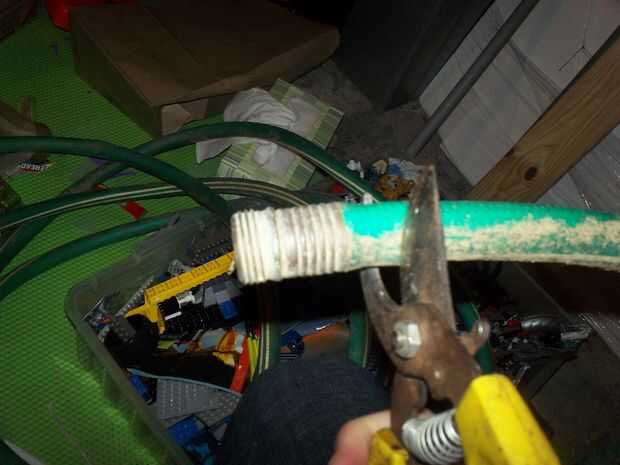 Ahora, en esta marca quiere intentar cortar a la mitad de la manguera. Cuenta con una manguera a los lados; usted quiere cortar sólo uno. Mi jardín podadoras hicieron un buen trabajo en hacer esto, hacerlo casi automáticamente.