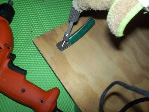 Perfore un agujero en el centro de la lengüeta de la manguera más grande que el tornillo. Haga una marca en la madera donde desea taladrar y perforar la madera contrachapada. Atornille el tornillo, y luego termine de un sostenedor de herramienta de la manguera.