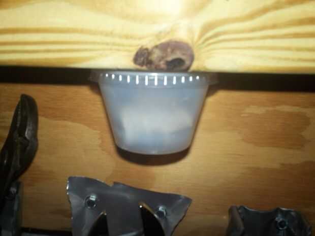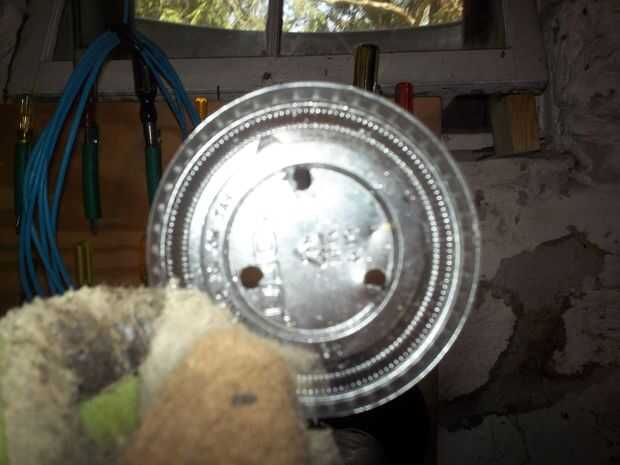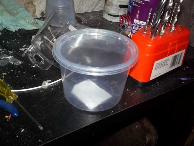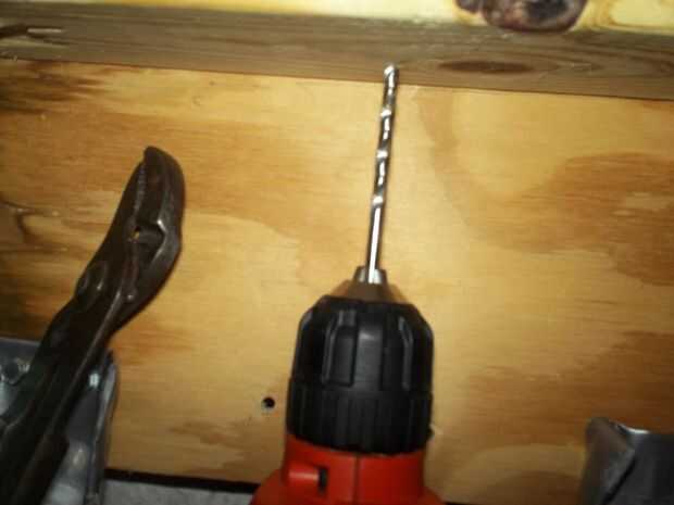 En primer lugar, Taladre tres orificios en forma de triángulo por la parte superior del contenedor. Haga una marca con un rotulador para cada agujero en la parte inferior de la plataforma. Perfore tres agujeros en las marcas. Colocar la parte superior y enroscar. Ayuda a tornillo en cada tornillo un poco a la vez.