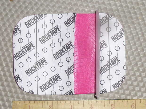 Cortar un trozo de cinta de aproximadamente 6-8" de largo y redondear las esquinas. Algunas marcas ofrecen tiras precortadas con esquinas redondeadas, pero cuestan más y puede ser demasiado largos. Si no puede encontrar la versión más amplia, puede utilizar 2 tiras más estrechas, pero aplicarlas por separado.