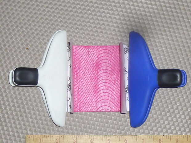 Consejo técnico: Si usas una cinta más ancha, te recomiendo un conjunto de clips de chip que ayuda a evitar las arrugas y para la aplicación de tensión uniforme en toda la cinta. Solamente usar el tipo de pinza que se sujeta con cuidado el material y el tipo que dobla/arrugas del material.