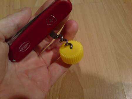 Empezar haciendo un pequeño agujero en las chapas. Use sus cuchillos/tijeras para agrandar el agujero. Tenga cuidado de no cortarse!!