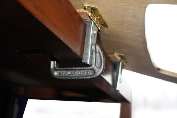 11. Coloque el soporte en la mesa y coloque el soporte debajo de la mesa.