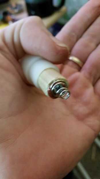 Retire el aislamiento el cable negativo. Gire suavemente el alambre para darle un poco de poder de permanencia. Enrolle el cable alrededor de la base de la primavera. Levante ligeramente el resorte por lo que puede meter el cable por debajo del anillo del fondo. Sólo necesita una pequeña superposición si va a lo de la soldadura. Si no quieres soldar, trenzar alambre firmemente antes de envoltura y su meta el cable cuidadosamente y firmemente debajo de la base primavera. No ser intimidados por soldadura... usted puede hacerlo!