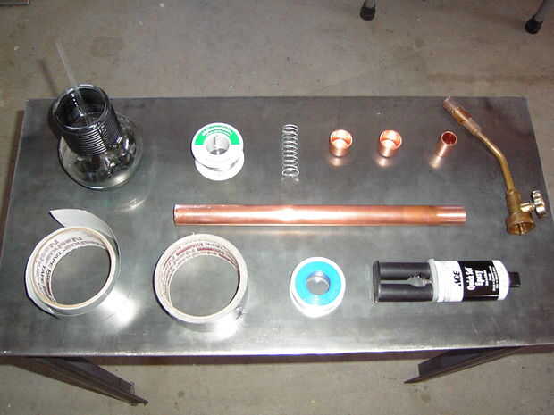 Además, suficiente 40 peso aceite de motor y anitfreeze en una mezcla 90/10 para llenar el tubo de cobre aprox. 2/3. completo.