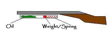 Como la pistola se ve obligada de retroceso, la primavera con ampliar debido al peso tiende a descansar. Esto, en combinación con el aceite descanso siendo golpeado por el otro extremo, produce un efecto de amortiguación.