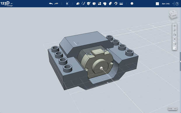 Foto 2, 3 La carcasa del motor impresa 3D utilizada en este proyecto fue creada en 123D Beta 9 y luego emigró a diseño 123D, ambos tienen funcionalidades similares. La carcasa del motor impresa 3D era el primer impreso de la libre oferta de impresión 3D de instructables.com (ahora cerrado).