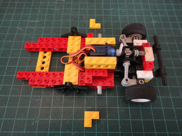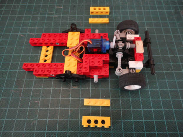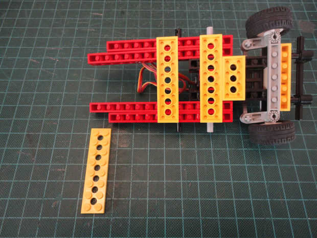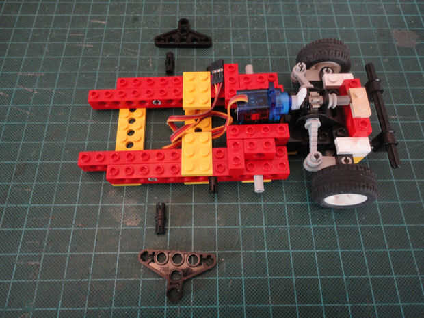 Foto 7,8,9 Cuatro clavijas de conector con fricción (#3673) y dos triángulos de brazo de elevación fina (#2905)