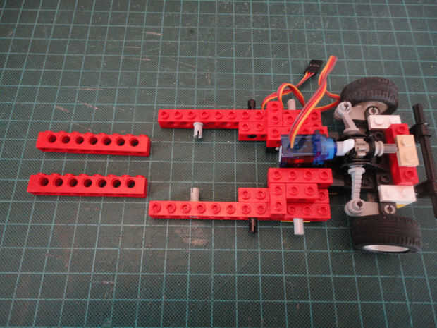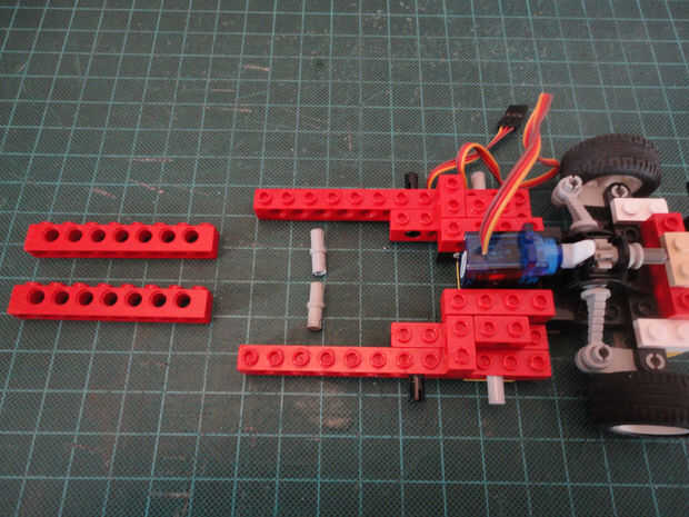 Foto 1,2,3 Dos de 1 x 8 ladrillos Technic (#3702) y dos de conector de clavija con la fricción (#3673)