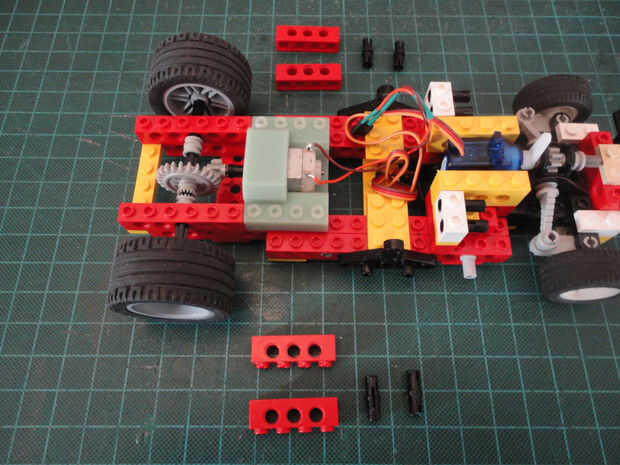 Foto 2, 3, 4, 5 1 x 4 ladrillos Technic (#3701) y cuatro de conector de clavija con la fricción (#2780)