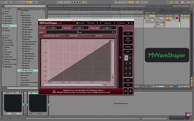 • Siguiente paso elegir MWaveshaper de paquete utilice el deslizador seco / húmedo al 100% con activar bloqueador de DC.