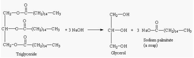 Una vez que agregamos el NaOH a la mezcla de que los dos ahora están reaccionando entre sí. Nuestra lejía ahora separa el glicerol de nuestra cadena y se une. Sin lejía que nuestra mezcla no limpiaría la piel porque en primer lugar que sería sólo estarán frotando grasa sobre ti mismo, segundo lugar de agua y las grasas se componen de moléculas polares y no polares. Con la lejía ahora unido a nuestra cadena es ahora jabón! El jabón puede limpiar nuestra piel porque cuando reacciona con el agua hace que nuestras cadenas formar una bola alrededor de la materia que estamos tratando de obtener de nuestras manos. Al igual que una grúa en una construcción bastante atrapa la suciedad y lo de permitir que el agua corriente lavar lejos recoge.